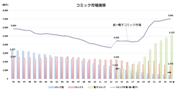 日本のコミック市場:電子化で右肩上がり
