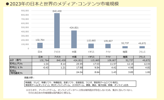 世界全体のメディア・コンテンツ市場と比較すると、その規模はまだまだ小さいようです。